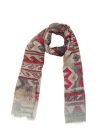 Wool Modal scarf with ikat design allover in pink and beige colorway with beige natural color border at both ends. 80% Wool 20% Modal