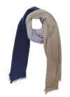 Filted cashmere scarf in dip dyed colors in blue and beige. The scarf has small fringes all around. 100% Cashmere