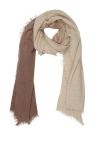Filted cashmere scarf in dip dyed colors in brown sand and beige. The scarf has small fringes all around. 100% Cashmere