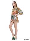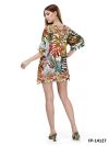 Tunic with round neckshape, overcut shoulders and short sleeves. The jungle print is in colorfull colors with leaves, birds and animal print based on white.