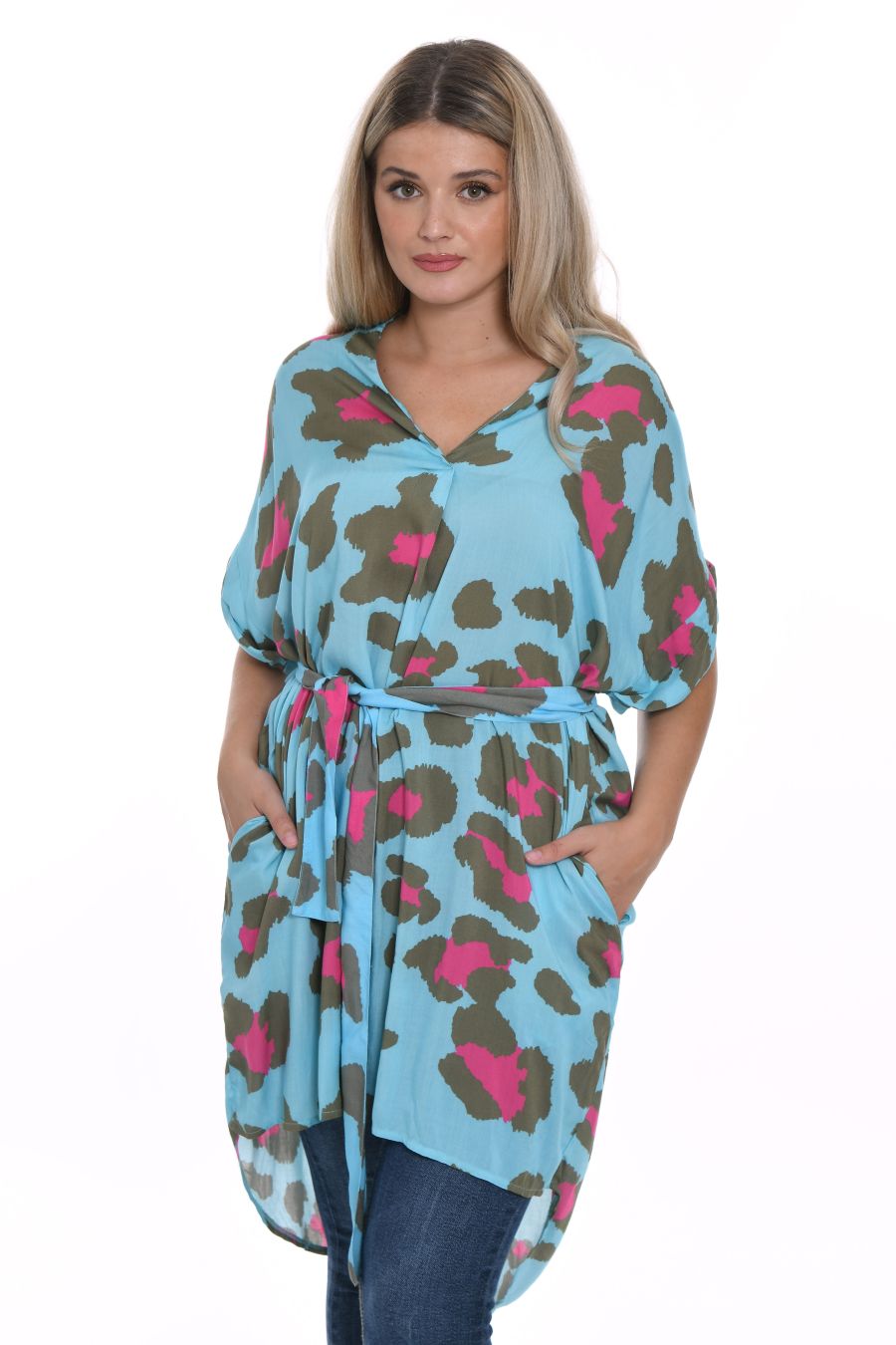 Shirt dress in blue with stains print